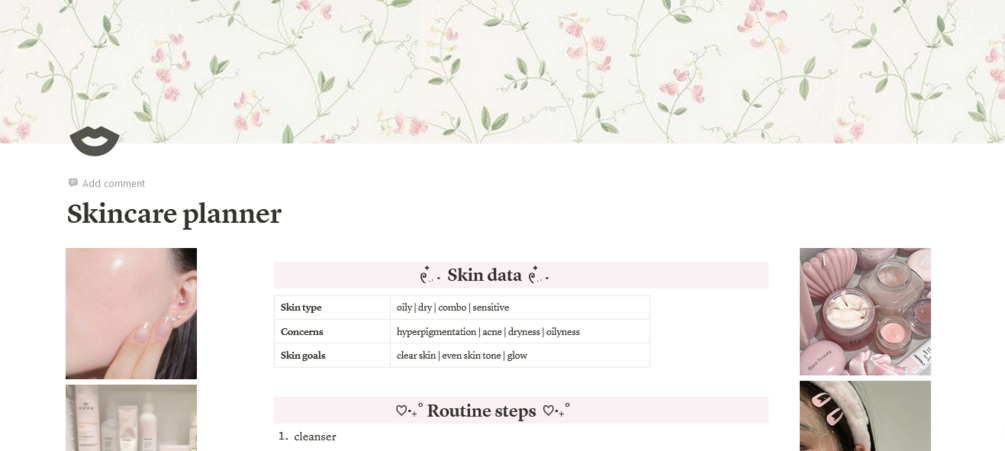 Thanks to this template you can organinze your skincare products in order, keep track your skin progress,